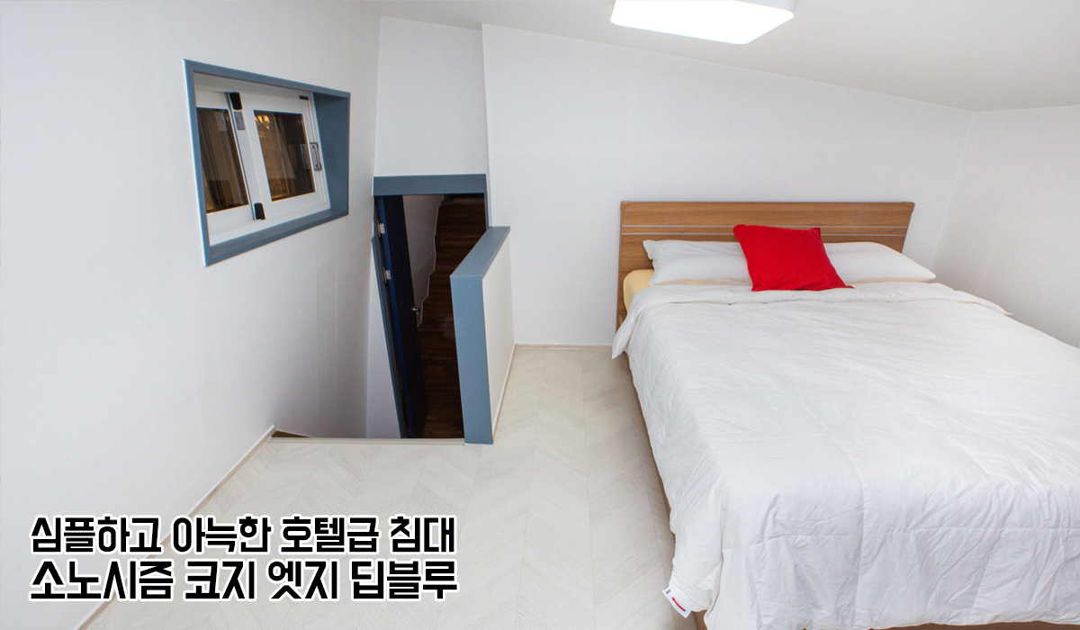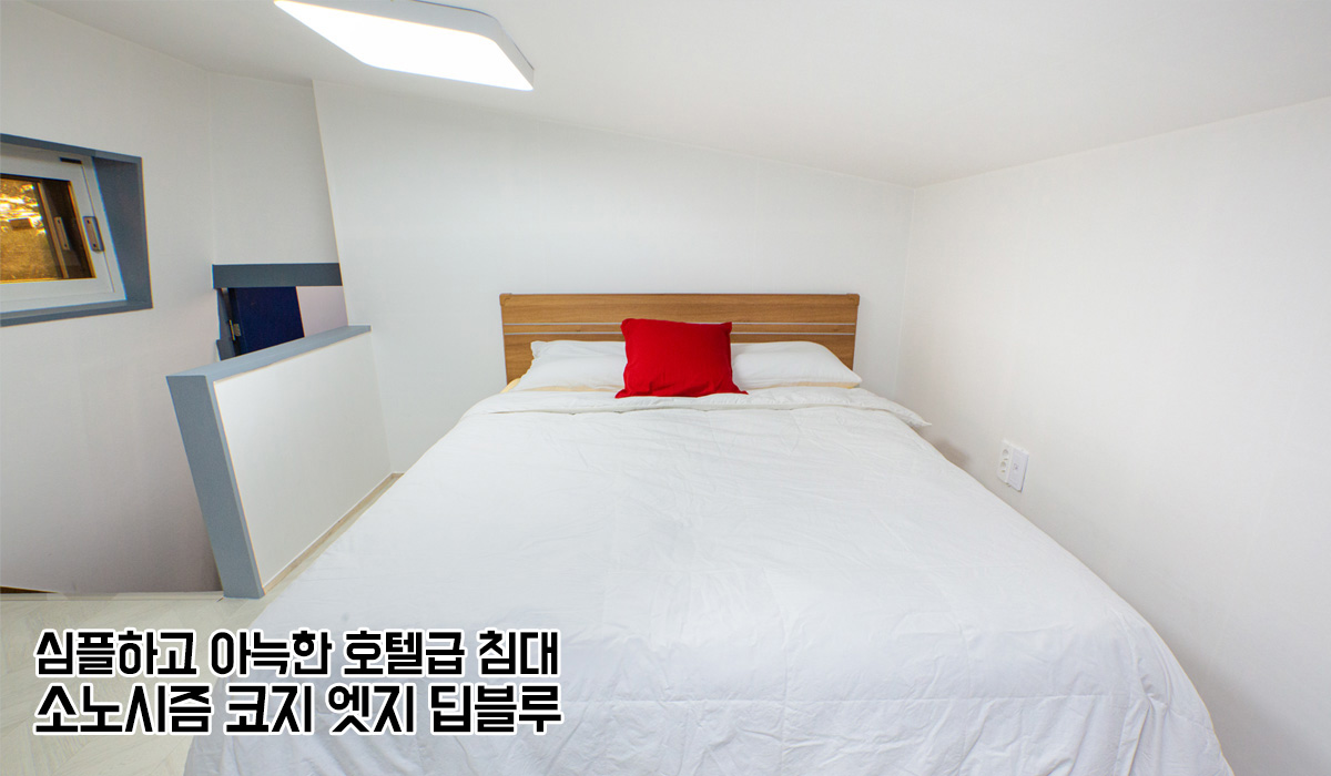노을3동 객실은 15평형의 거실+복층침대로 구성된 객실입니다. [바다와의 거리 약 100m]